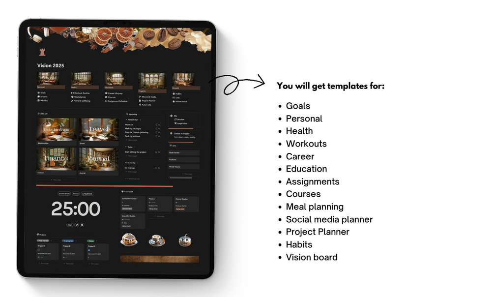 The new year is the perfect time to invest in yourself. With the Vision 2025 Dashboard, you’ll have everything you need to create, organize, and thrive in every area of your life.