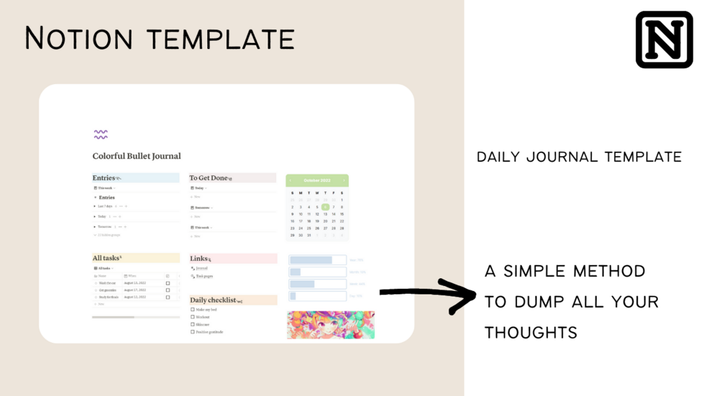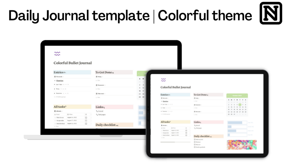 Notion Bullet Journal | Daily Digital Template | Colorful theme