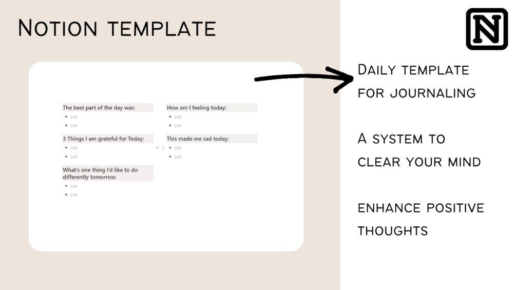 If you feel that writing with your hand is time-consuming and not convenient then this Notion template is the best digital way to integrate journaling into your life.