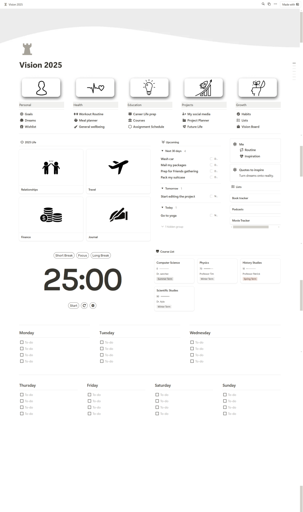 Classic light Theme | Vision 2025: Your Ultimate Notion Dashboard for an Organized and Inspired Life