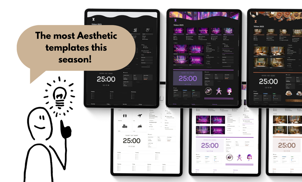 Important: To display your Vision 2025 Dashboard in Dark Mode, simply go to your Notion account settings and switch to Dark Mode for a sleek, nighttime-friendly aesthetic.