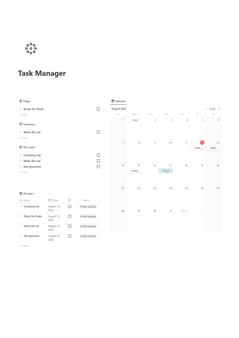 Free Task Manager For Productivity | Notion template